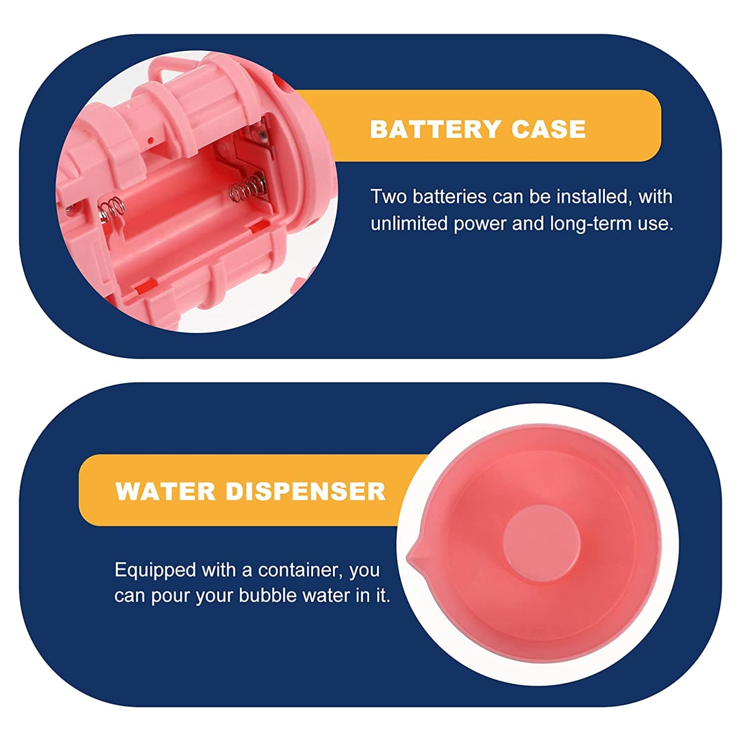 • Easy to Use: Fill the tray with bubble liquid, dip the holes into the liquid, and press the button to get a bubble blast.